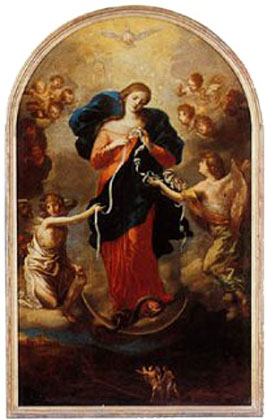 Sie zeigt die Mutter Gottes, wie sie die verwickelten